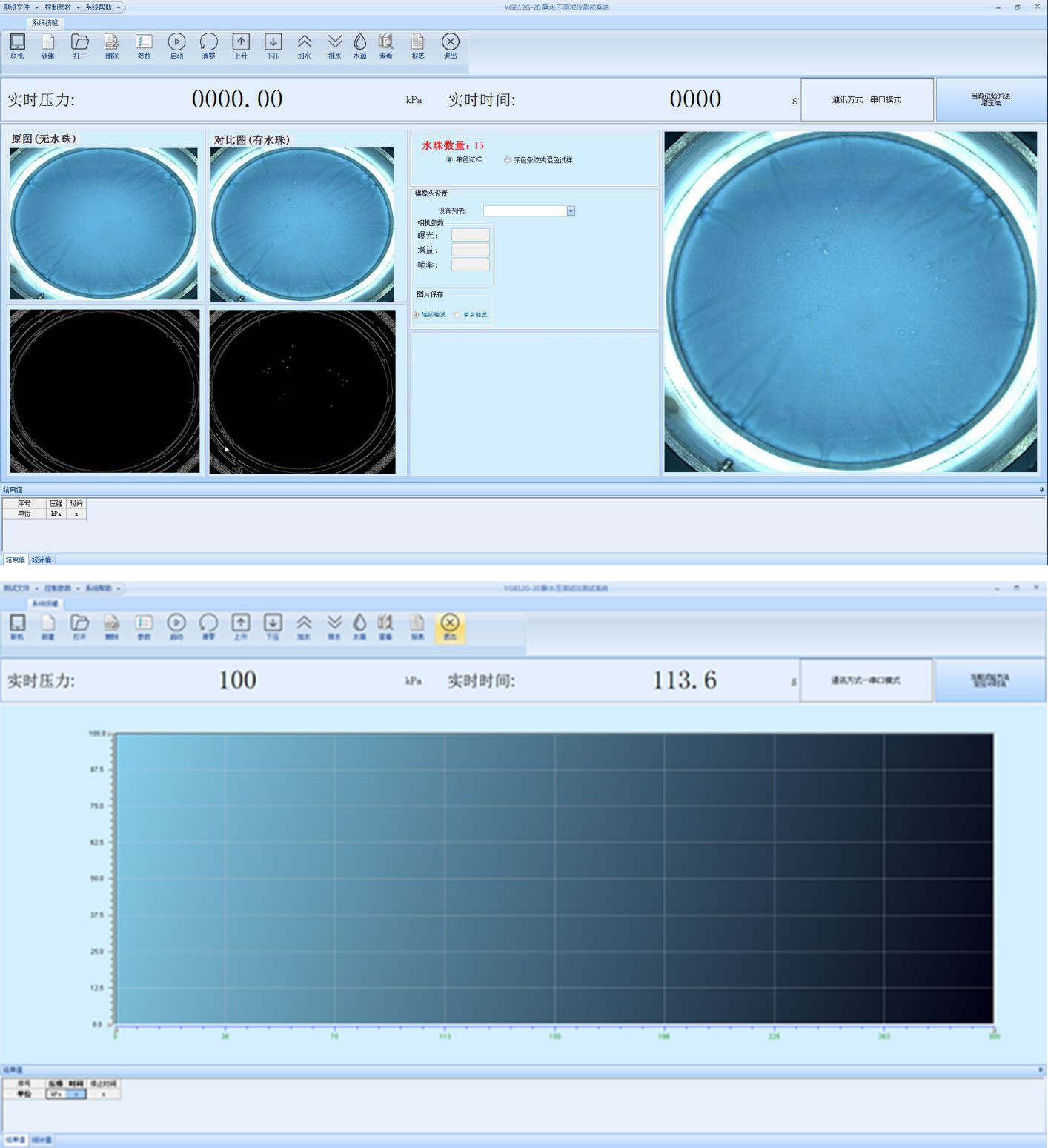 在織物滲水性能試驗(yàn)方法之一的靜水壓試驗(yàn)法中,對水壓上升速率有著嚴(yán)格的要求。例如GB/T 4744-2013要求升壓速率為6.0kPa/min±0.3kPa/min精度要求很高,在做織物靜水壓試驗(yàn)中,要保持上述精度的升壓速率,一般情況下較難實(shí)現(xiàn)。因?yàn)樵谝欢▔毫ο?,織物表面?huì)產(chǎn)生異常變形,而且是突然加大,使原來穩(wěn)定的升壓速率突然降低。除非使用由計(jì)算機(jī)組成一個(gè)壓力檢測控制系統(tǒng),否則無法真正達(dá)到國標(biāo)規(guī)定的水壓上升速率精度。