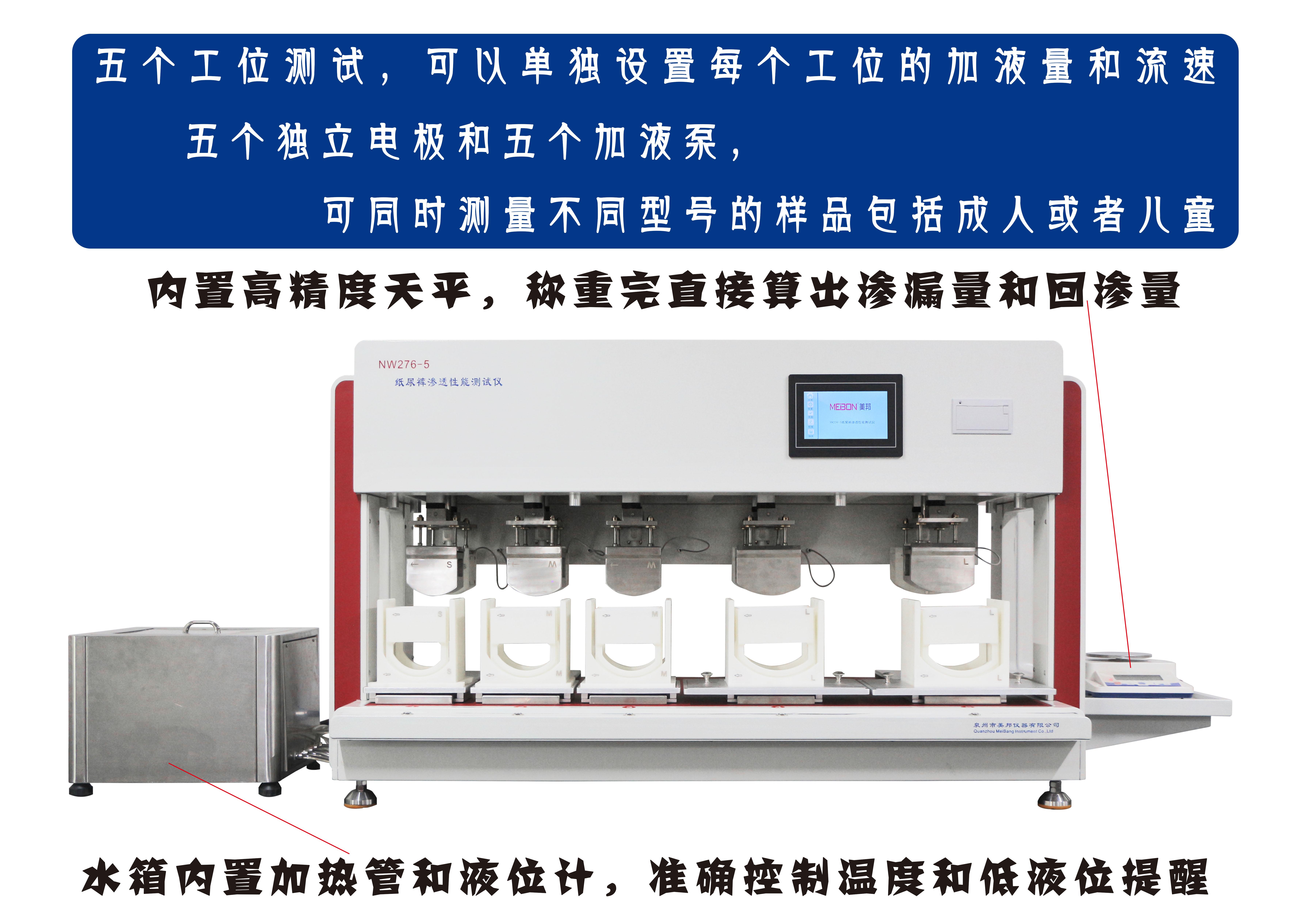 隨我了解我司新開(kāi)發(fā)五工位紙尿褲滲透性能測(cè)試儀