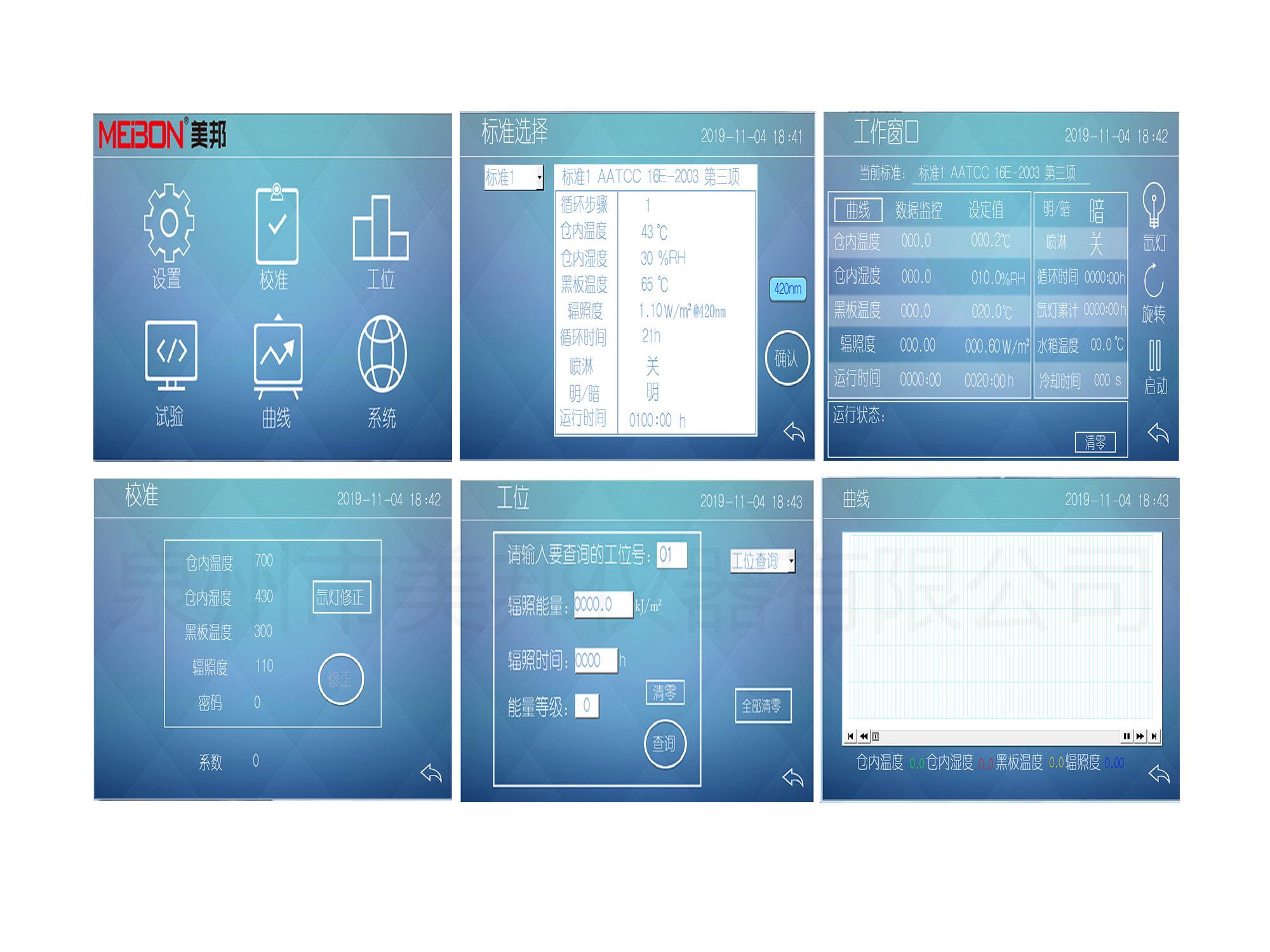 用于橡膠、塑料、油漆、涂料、石油化工、汽車、紡織等行業(yè)制品及材料進(jìn)行太陽輻射模擬光色牢度、光汗復(fù)合色牢度及光老化等試驗(yàn),通過模擬光照、淋雨、噴霧、明暗交替、溫度及濕度等氣候條件,以測定材料制品的褪色、老化、變退、透過率、剝離、硬、軟化等性能變化。